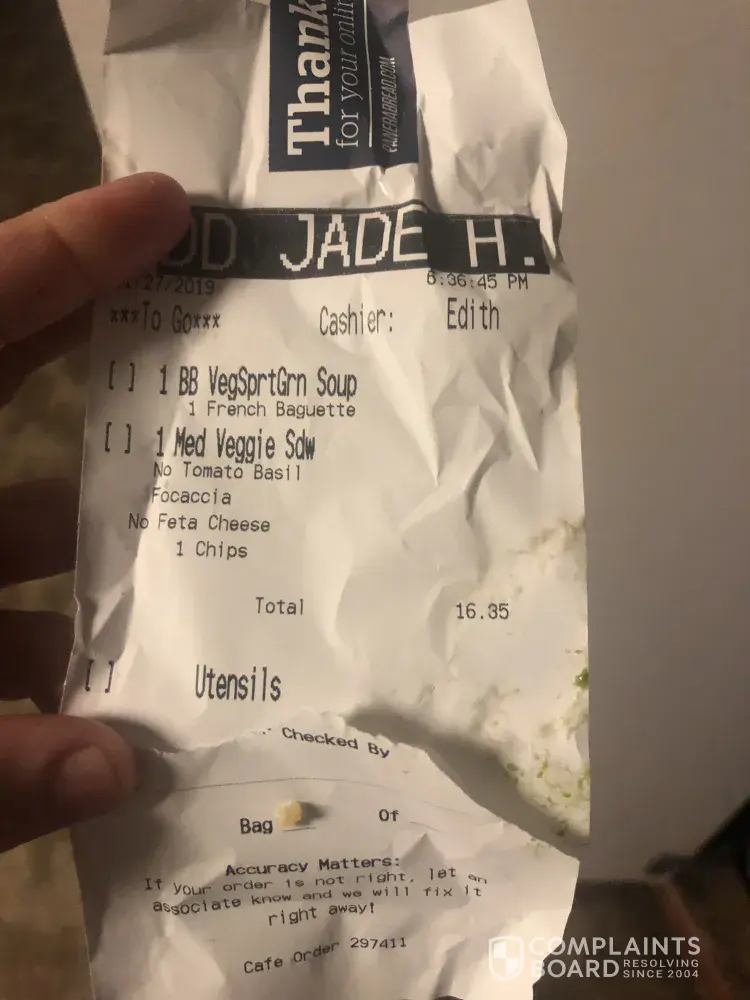 I go to this store about once a week and spend over $40 on breakfast and lunch. More often than not, the orders are missing something. Today, it was one of the sandwitches I ordered and the Croutons for the soup. Several times it has been the extra chicken we ordered for the salad. I started checking the orders myself, but that was a real inconvienence...