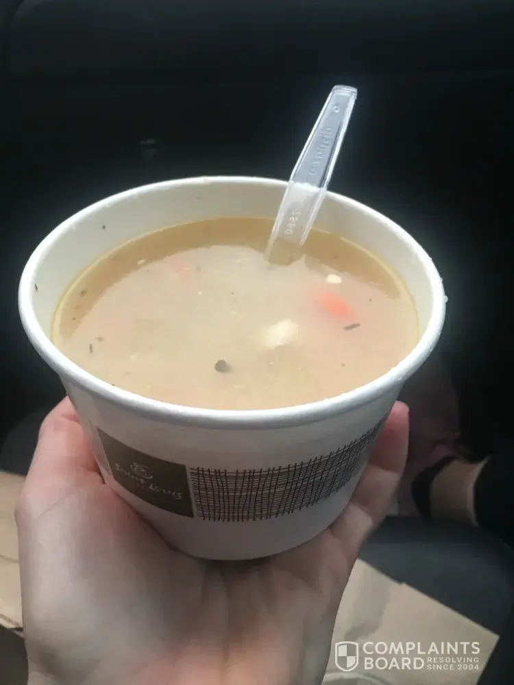 I got a to go order of Chicken Noodle soup and added a 1/2 sandwich for $2.99. The soup was almost $10. Once I was back on the interstate I opened the soup and it was very small. I paid $10 for a bowl of soup, which I thought was high but was assuming it was a larger portion. I took pics but not sure if it will let me load them. I couldn't turn around bc we are in a hurry for work. I am super disappointed. I feel like I was ripped off. Won't be ordering that again.