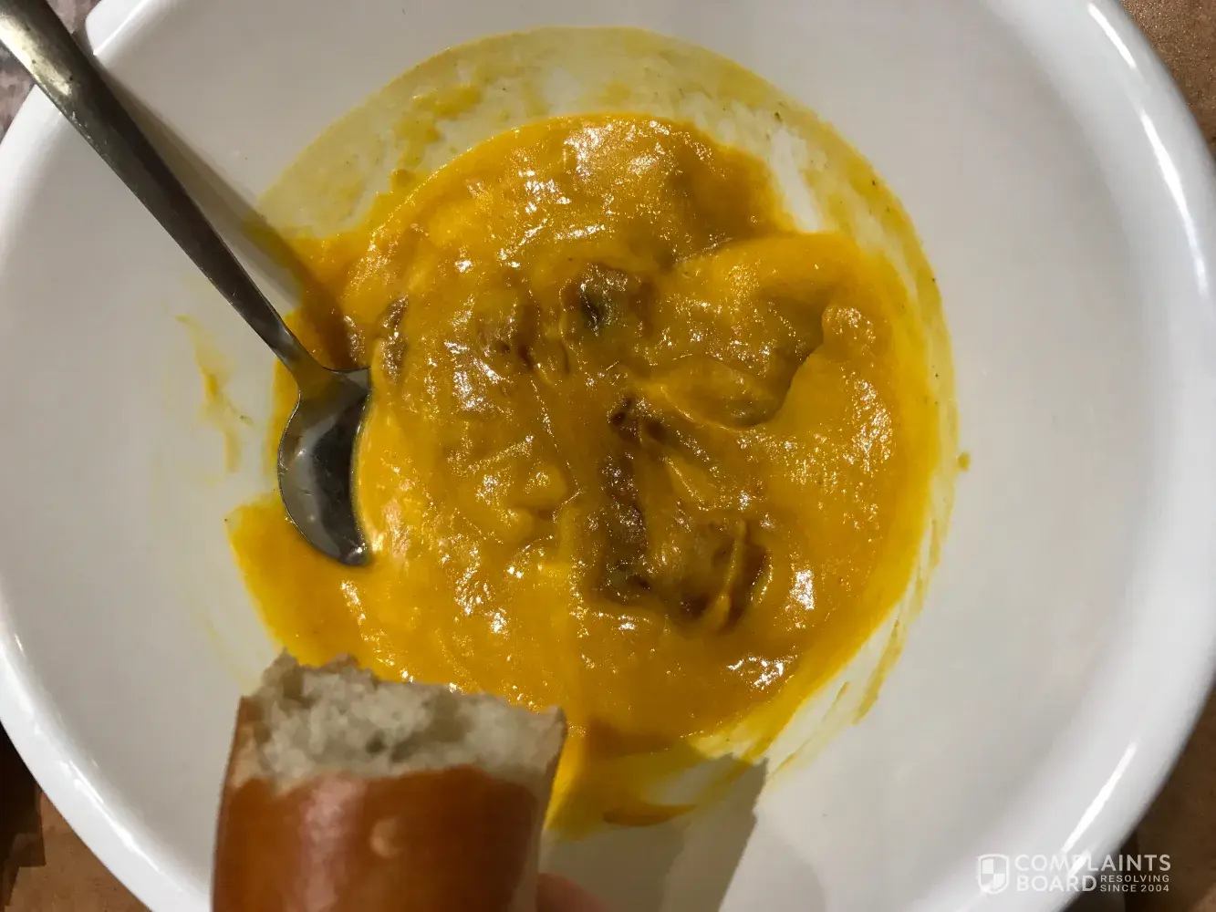 Hello, I went to panera bread this past Sunday (9/30) at 7:45 with my boyfriend. When we arrived, I ordered autumn squash soup and he ordered soup and a sandwich. They told us there were out of bread even though there were some bread bowls that could have easily been cut up for a substitute. We ordered apples instead. Before our food came out, they told my boyfriend that they did not have the soup or sandwich available that he ordered. When i got my soup, there were burnt clumps in it. I also had to buy a plain bagel in substitute for the baguettes being out. There weren't very many people there, but it still took the staff over 20min to have our order ready. Needless to say we were very unhappy. Either a refund or some type of reimbursement would be nice.