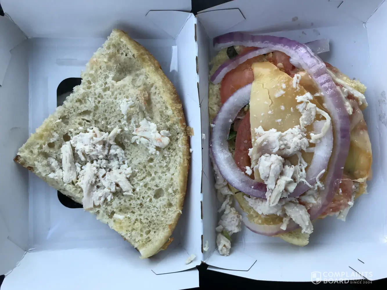 Can't really call it a front Tega chicken Panini when you really don't add the chicken. List location always messes something up but this tops every negative experience thus far. For the price you pay for a sandwich, you should expect to get what you pay for, nothing less. There has got to be someway to correct the poor service at this location. There is poor service almost every time I visit and all I do is hope that it gets better. It has yet to.