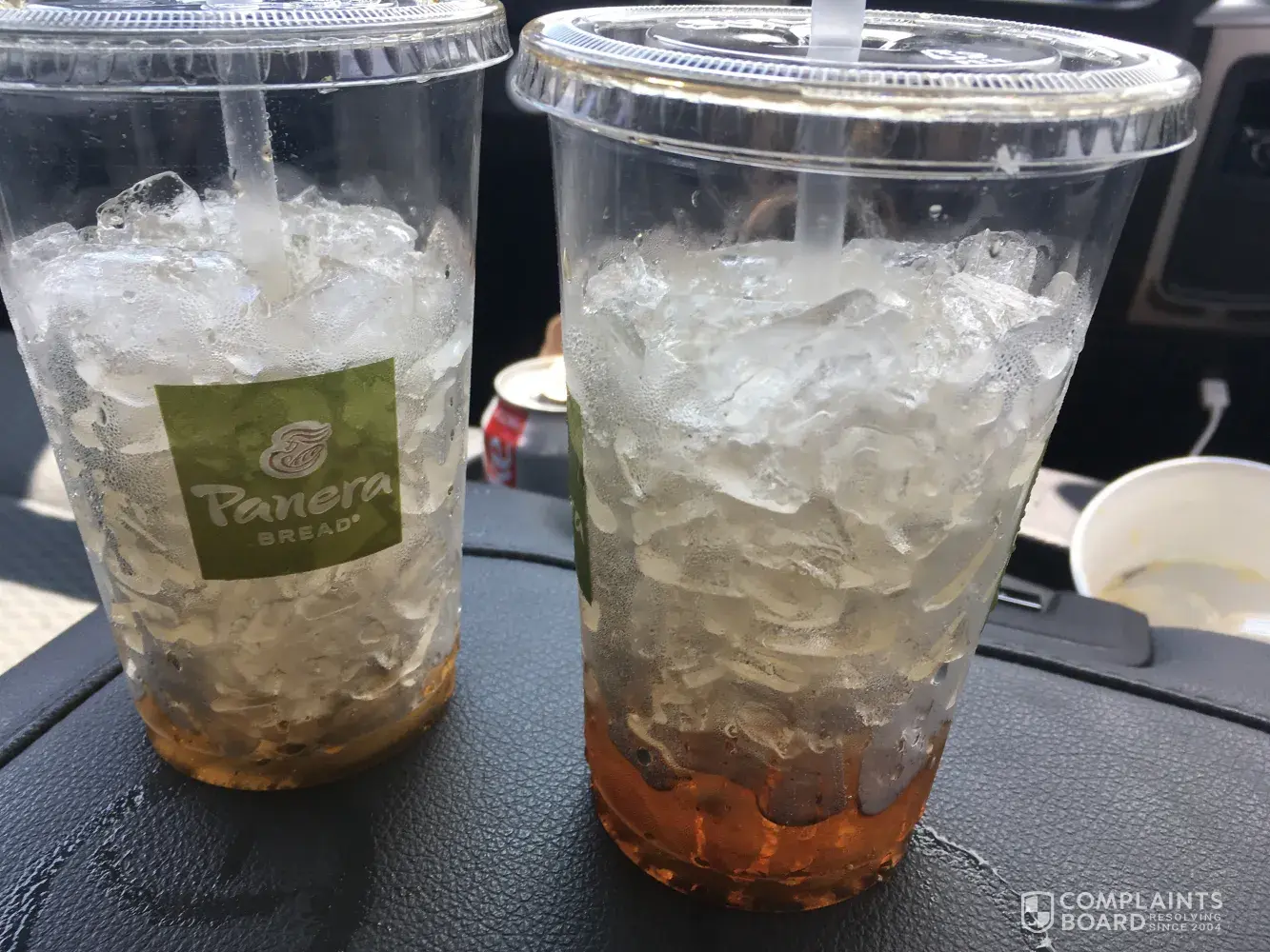 First we waited about 15 mins for our food in the drive threw. Then we get our food are order was right but what a disappointment I come to Panera bread all the time and never seen the food like this. I got a whole frontega chicken panini and one had a whole block of cheese then my second one had no cheese. Meat was half off the bread. Our drinks had no pop it was alllllll ice. So when we get our food they don't even say sorry for your wait of anything. Never going back to that Panera. Austin landing Ohio panera bread.