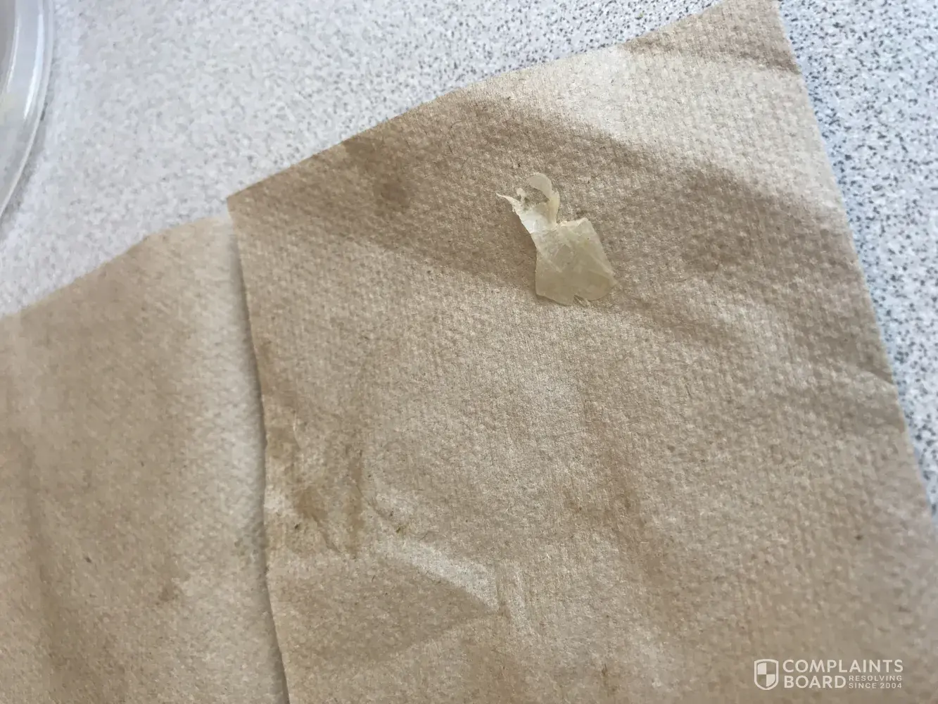 I just purchased the broccoli cheddar soup less than 30 minutes ago... as i was eating the soup something got stuck on my back tooth, which didnt go along w/ the rest of consistency so I then spit it out. It was this thin clear whitish thing... After seriously observing & finding out the ingredients in the soup, this is not a food. Its some kind of FOREIGN object in my food I paid for... Only God knows what this is, I could have had some kind of reaction to whatever this is!