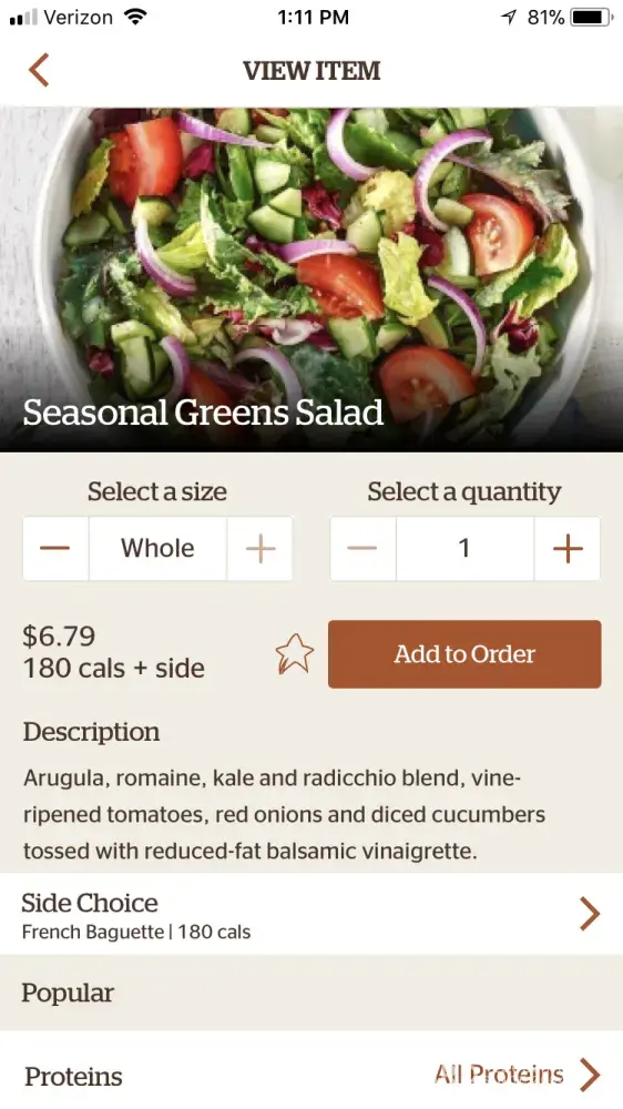 I have been a mypanera member and customer for years now and never been this disappointed. Iordered the seasonal greens salad and paid $9 for a salad that is half of the regular size. The salad I received was not the regular portion. I have attached a picture of what the salad looks like on the panera website and my salad looks nothing like that . I also attached my receipt and a picture of my sad salad 😔