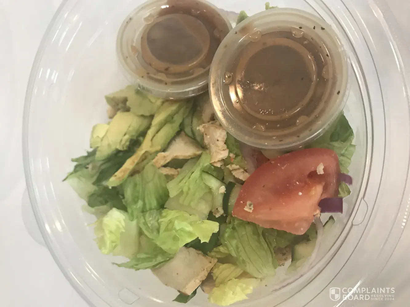 My 2nd time doing this. Not sure it went through. I order this salad 4 times a week. I went into Panera today ordered my salad. Extra eggs and no Avacoda. The gentleman called my name I looked into the bag to check my salad as I do. I noticed the presentation and their wasn't much salad in there. I also noticed that the eggs were thrown other whole and not sliced like they usually are. I could see the traces of Avacoda that was wiped off chicken. I show it to the gentleman who handed me my order. He says I dont see anything wrong with it. I left then went across the street to McDonald's and called the restaurant asked to speak to the manager only to find out that was the manager. He argued the point that their wasn't anything on it. I hung up the phone.