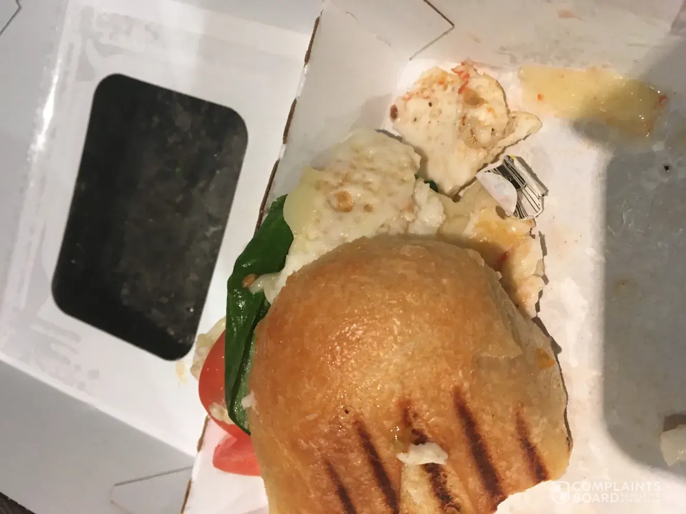 Café order 974352 (Knoxville, TN ), I ordered a tomato mozzarella flat bread sandwich. I added spinach, Gouda and chicken. My tomato mozzarella flat bread did not have any tomato or mozzarella on it. It was a spinach, gouda and chicken sandwich. I tried to find a contact email on the website but I guess that must be a secret. I would like my money refunded for the sandwich, I will pay for the chicken & Gouda.