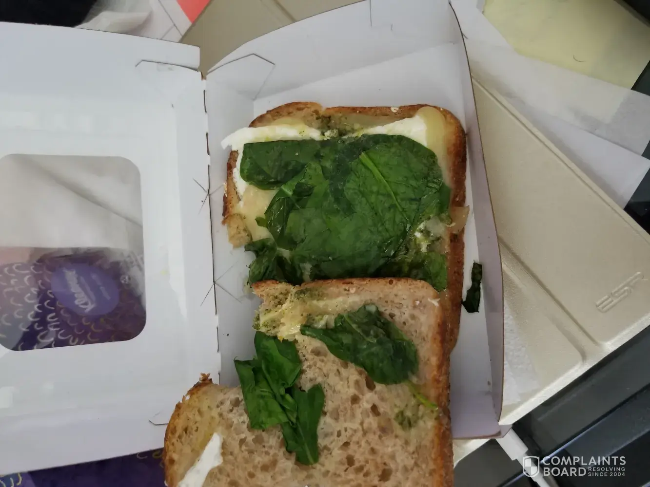 I order this breakfast sandwich all the time. I have never received it like this. I really like Panera. Now I have to check my food before I leave. Disappointed because Panera is not around the corner for me. This is not the quality service that I usually receive from Panera. If they did not have the ingredients, they should've said something. All I have is egg whites, cheese, and spinach. Where are the other ingredients which made me love this sandwich!?! I really hope this doesn't happen again. Fyi, it taste horrible on wheat bread.