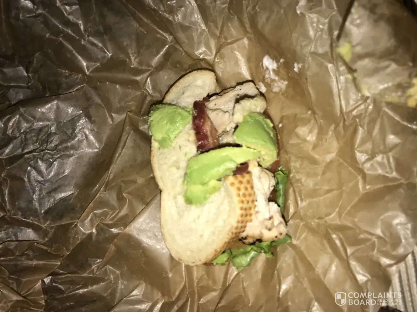 I went through the drive thru on my way to work to pick up the sandwich. When I got to my job I open the sandwich and the avocado was on the outside of the bread. The bread was dismantled and had been ripped everywhere. I had no time to go back and when I called they didn't even offer to remake my sandwich. This was a waste of my money and I'm not sure why they would even service sandwich that looked like that. I didn't even want to eat it because it look like somebody had already taken a bite out of it.