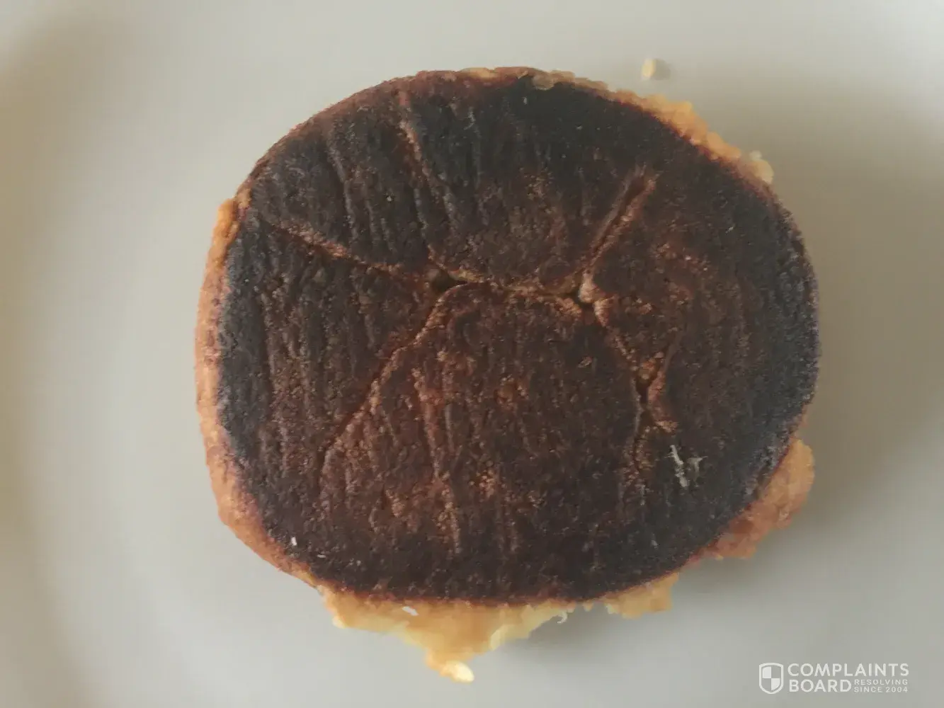 Several times the turkey sausage/spinach/egg white breakfast sandwich has come with very burnt/blackened crust on the lower half of sandwich bread. I have a photo of it if I can post here---ugly and unhealthy, maybe even a health hazard. If you notice their panini grills, they are very dirty! This is not good. I have complained several times at two...