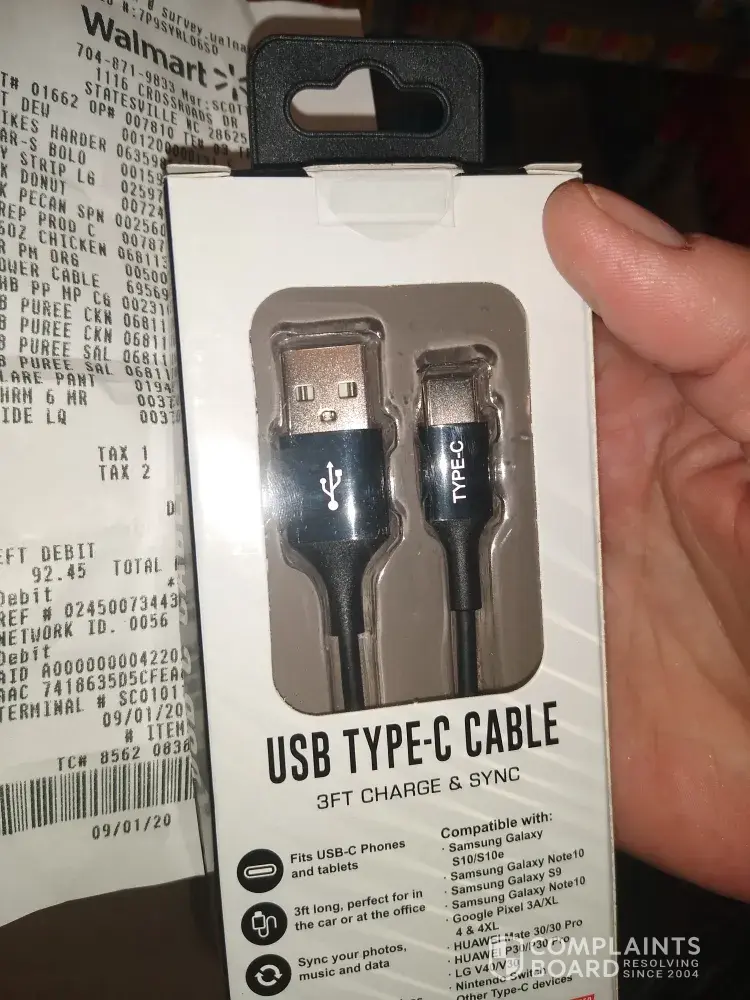 Bought cable from Walmart for my wife's new Motorola phone. It was to be an extra cable just for the car charger.