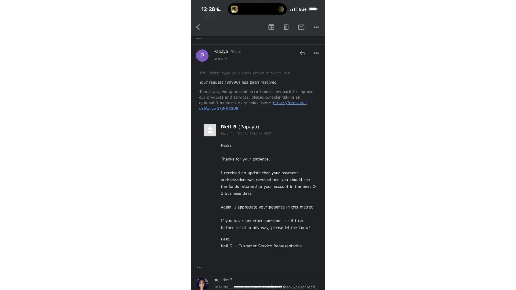 I made ONE $100 payment yesterday 8/15/22 through Papaya app, towards my medical bill with Texas Oncology. I wake up this morning & there's a 2nd unauthorized payment submitted in wee hours of the morning (4:20 a.m., while I'm asleep) for the exact same amount of $100. I did not authorize another payment. I've been trying to call them this morning & no answer and I've sent an email. So far, no response. I'm attaching the one payment I made with confirmation and the text of another unauthorized charge submitted at 4:20a.m. & the two pending transactions on my card. I want a refund of that second unauthorized payment of $100. Thank You