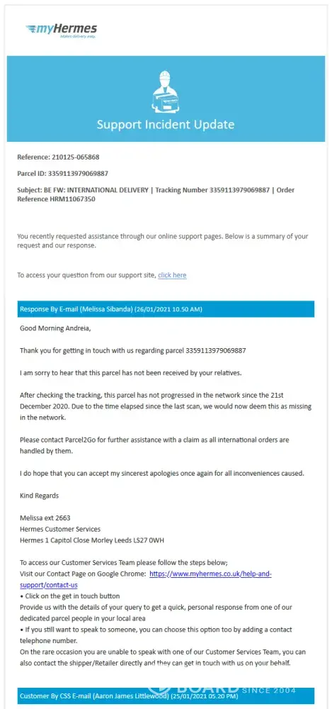 Parcel2Go.com Missing parcels enquiry | parcel2go & hermes international