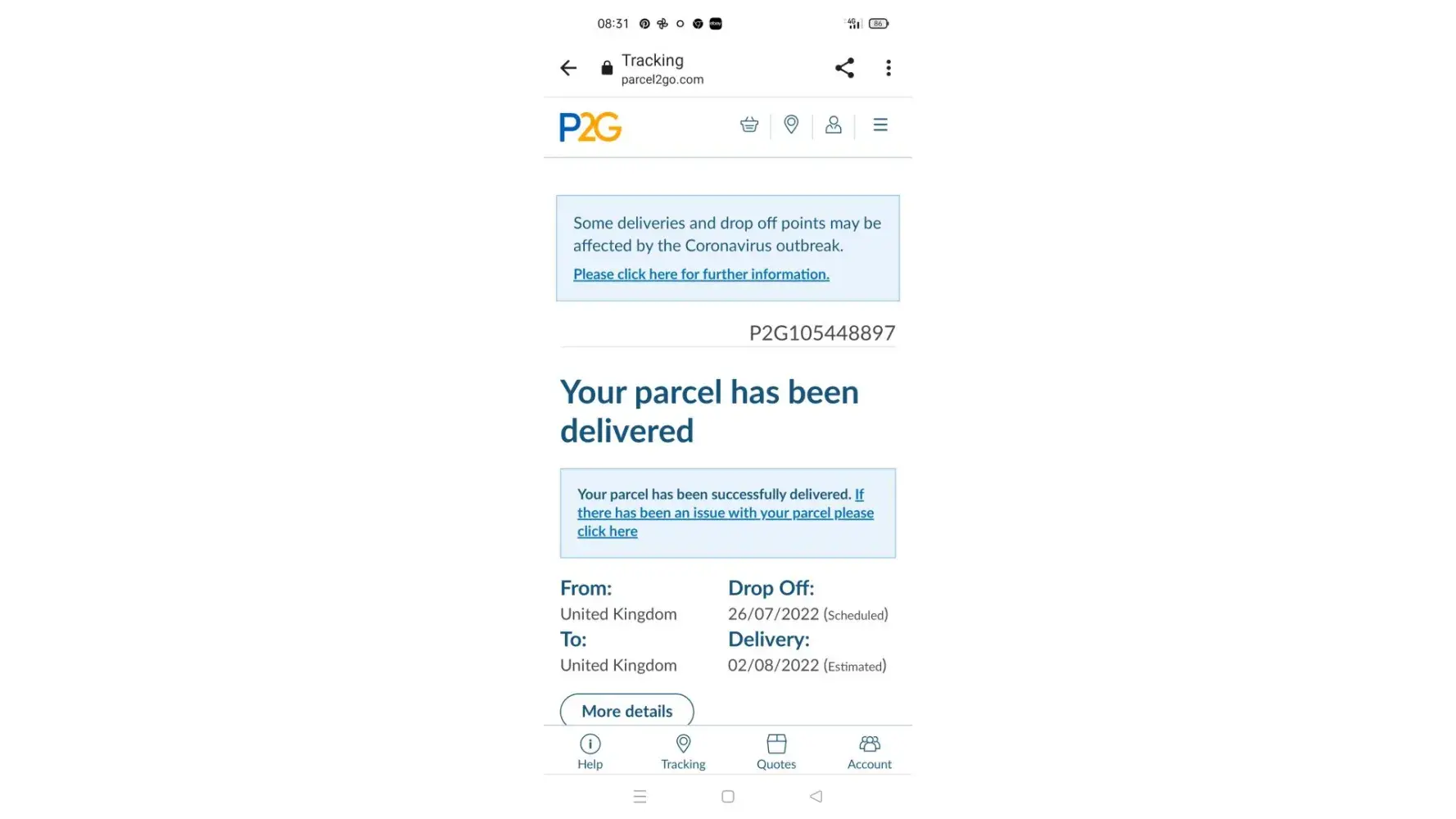 Parcel2Go.com Delivery