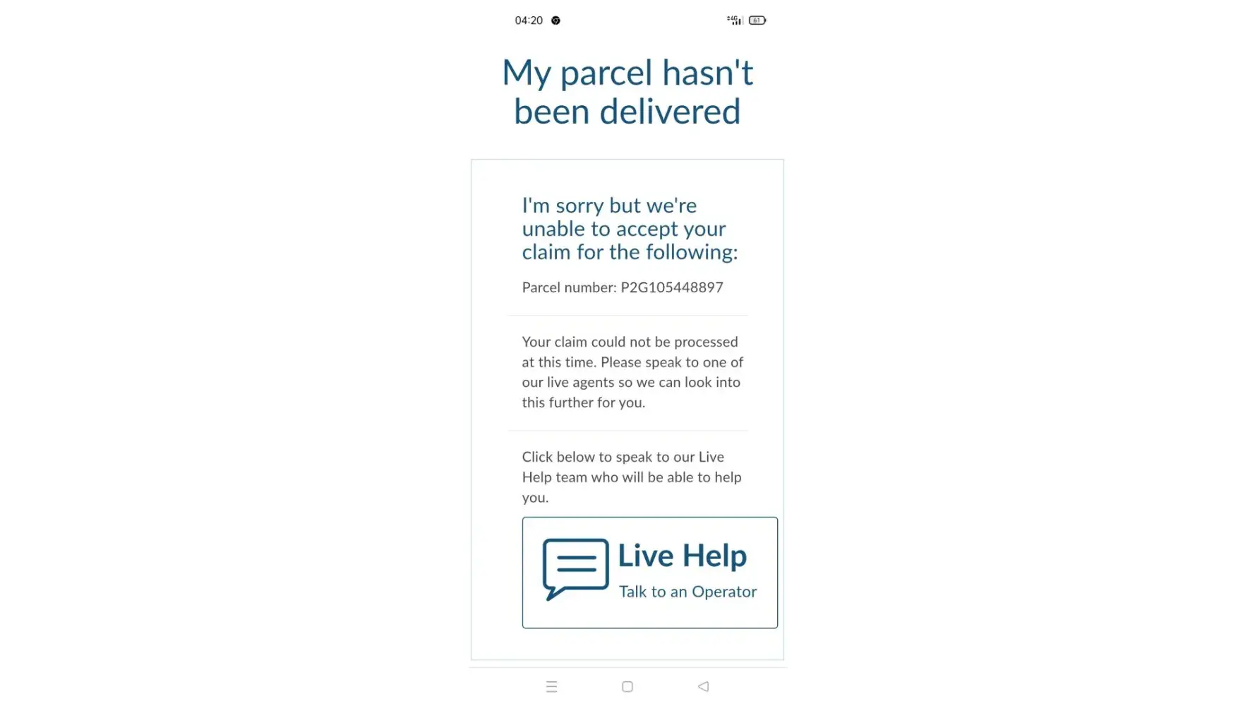 Parcel2Go.com claim for undelivered parcel