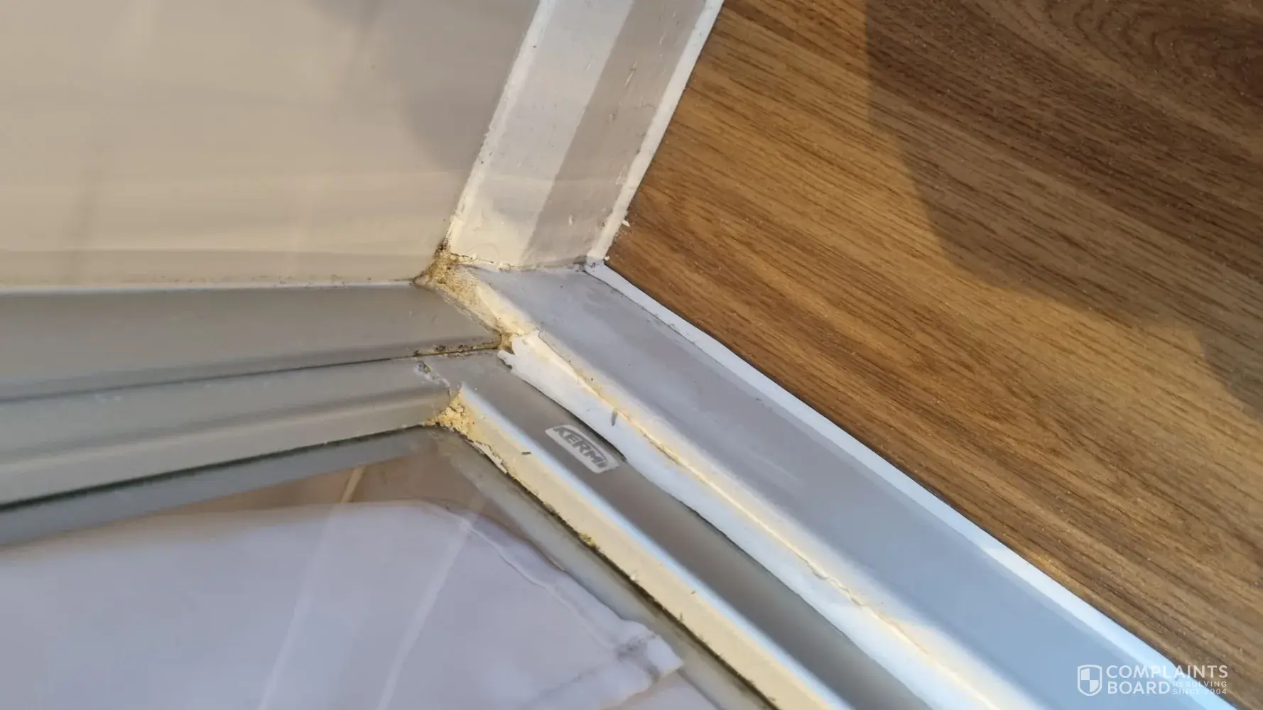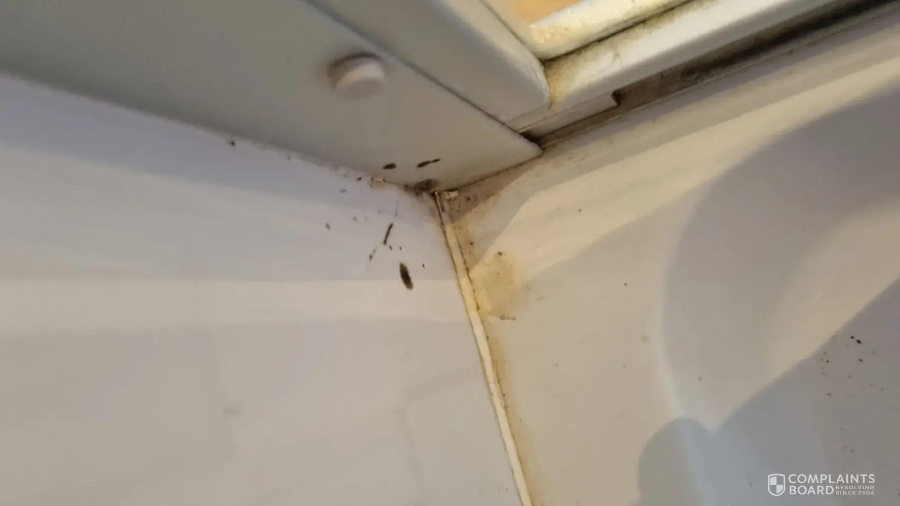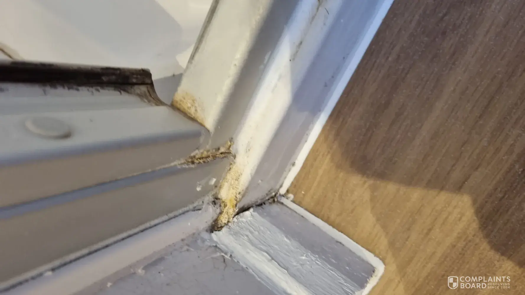 There was dead flies on the carpet and window seal, bits missing from the corners of the window frames and what looked like someone’s fingernail under the tv unit. (Photo 4&5)