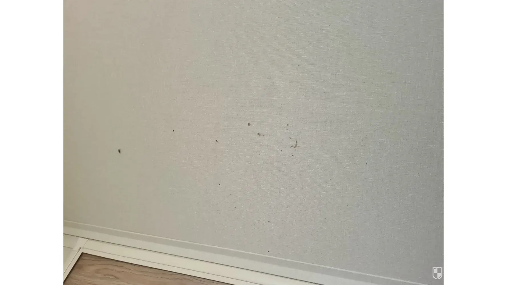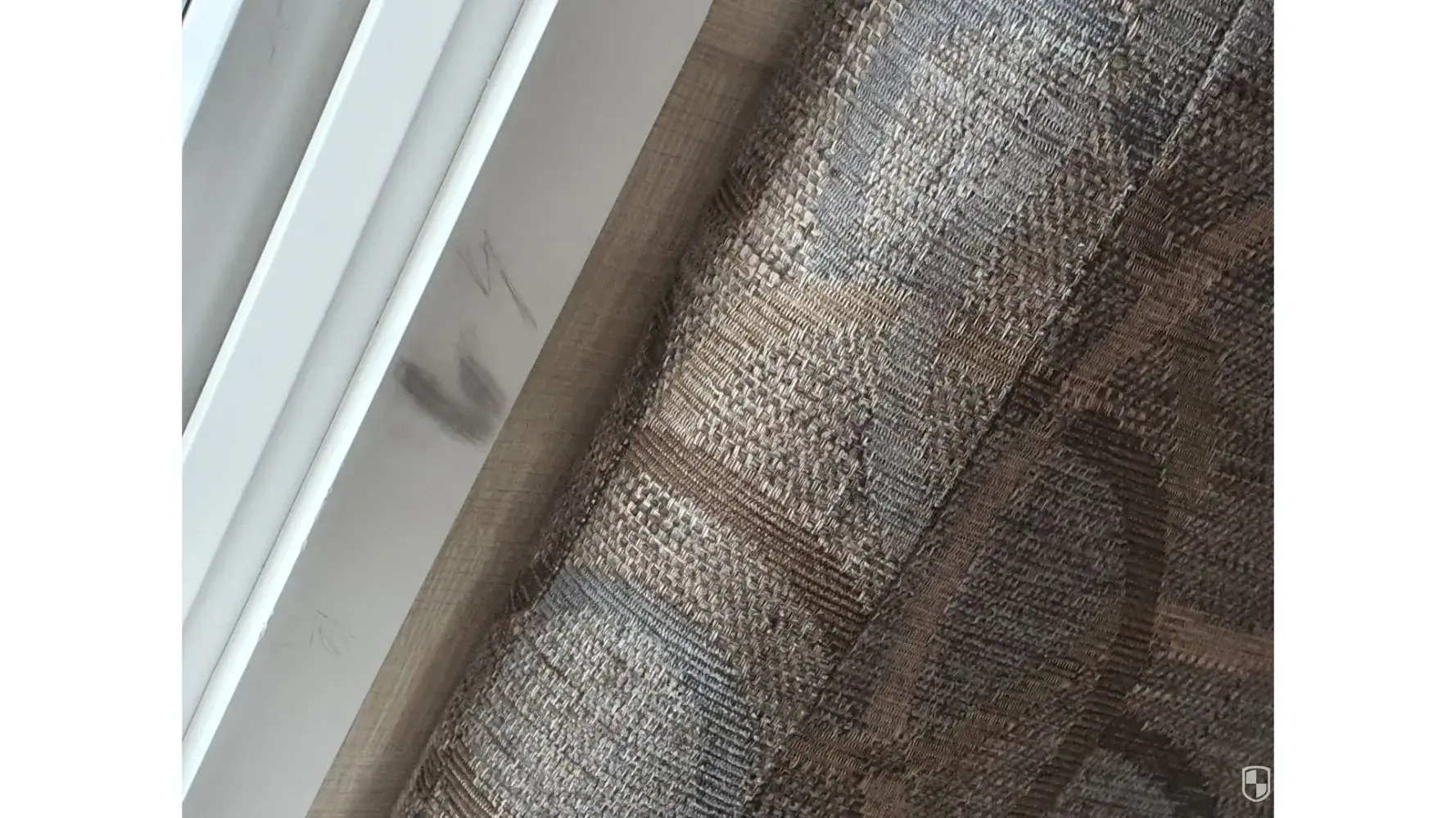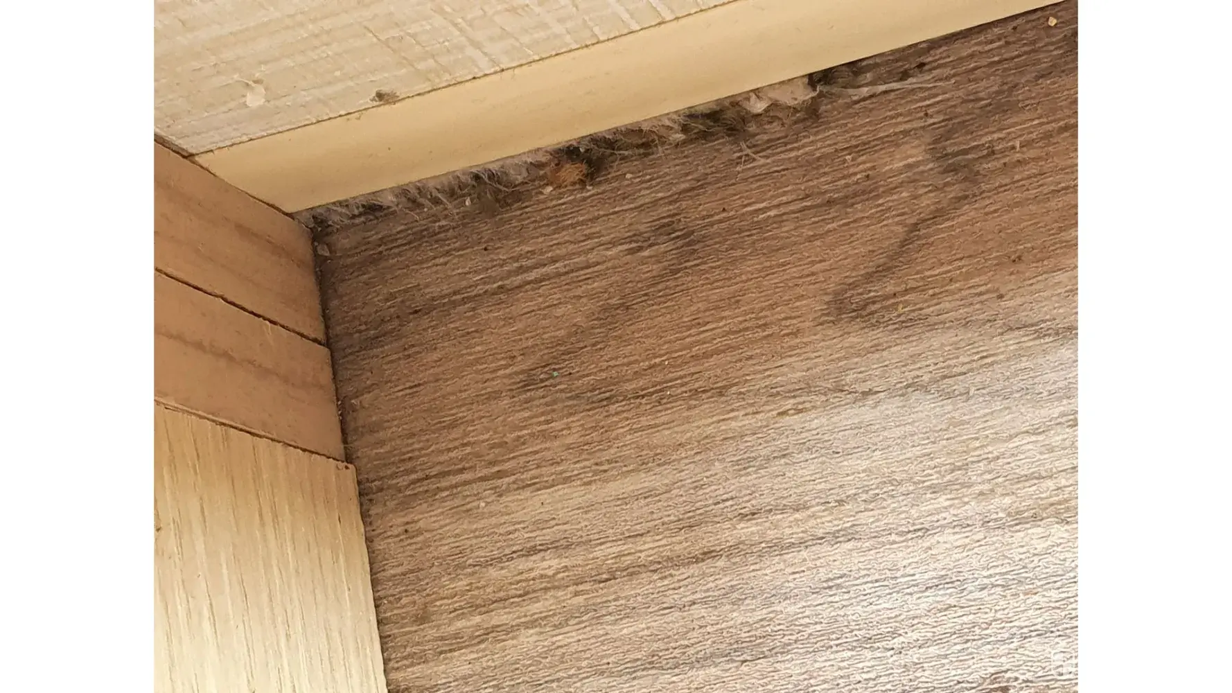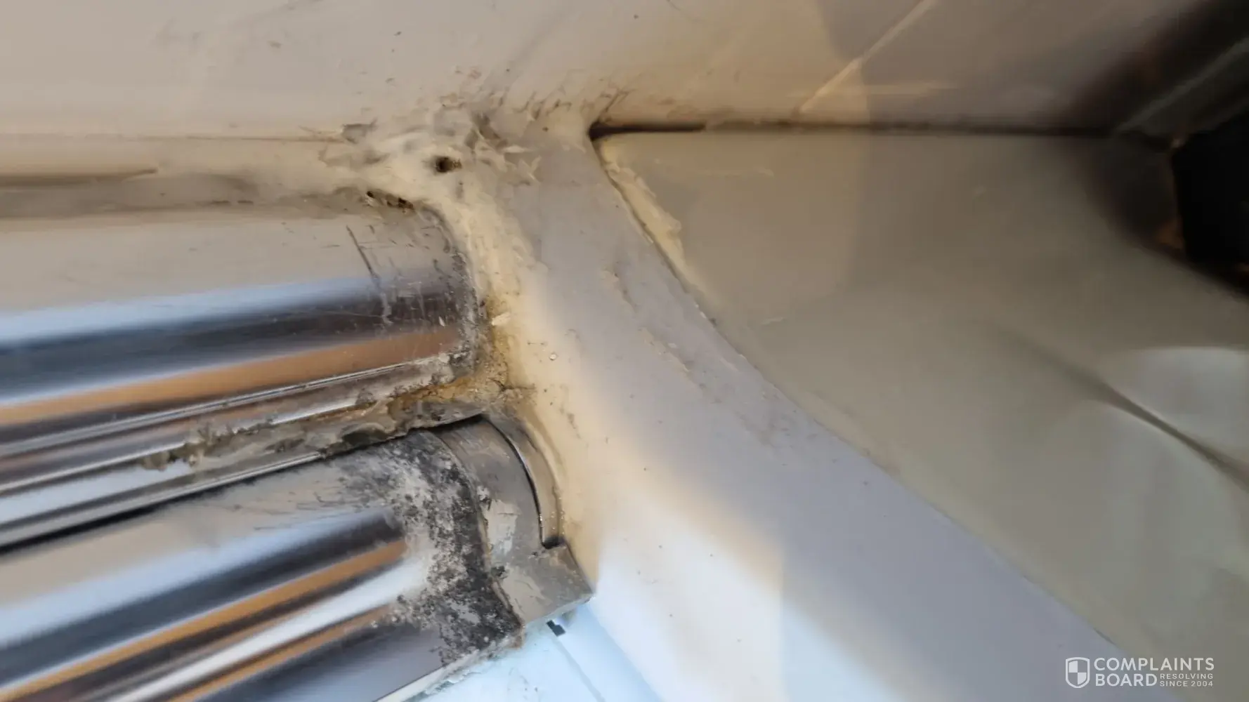 There was dead flies on the carpet and window seal, bits missing from the corners of the window frames and what looked like someone’s fingernail under the tv unit. (Photo 4&5)