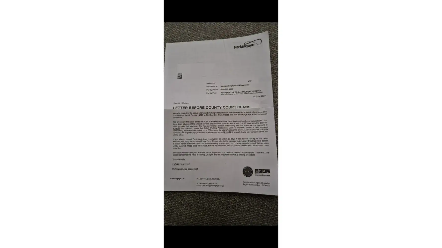 The whole system is a farce and needs rapidly sorted,they’re just bullies who demand payment,getting a ccj for a parking fine should be better regulated or banned altogether.
