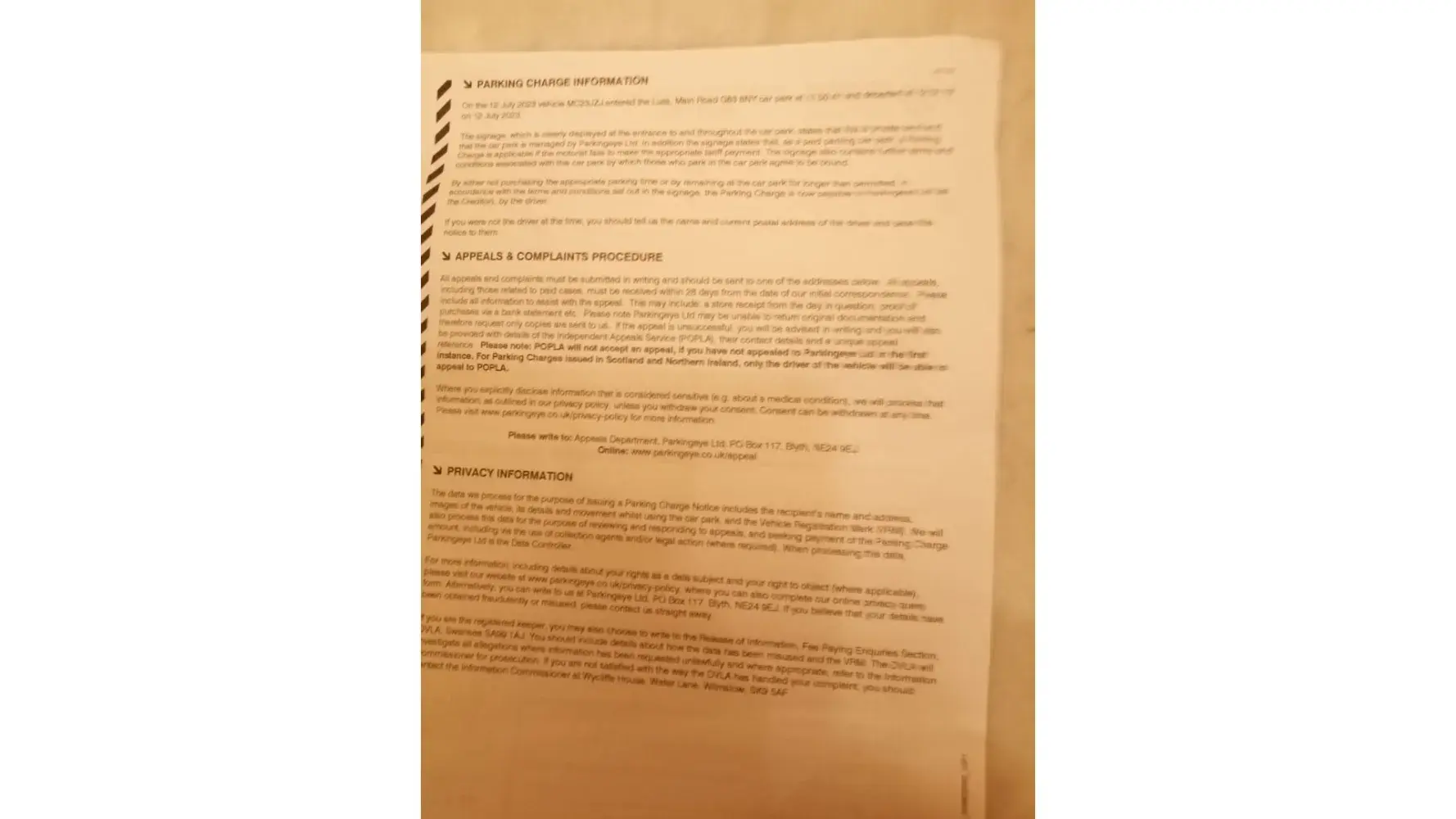 Parking charge notice