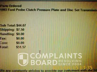 This is what I ordered I copied this from the e-mail I was sent verifying my order. "1993 Ford Probe Clutch Pressure Plate and Disc Set Transmission Price: $44.07 Core: $0.00 Qty: 1 Part #: SD614." Needless to say I was surprised when all I got was a clutch disc. I'm no lawyer but isn't that false advertising? They even had a picture of the whole set I was supposedly ordering. I think I'll stick with ebay. Haven't had any problems with them.
