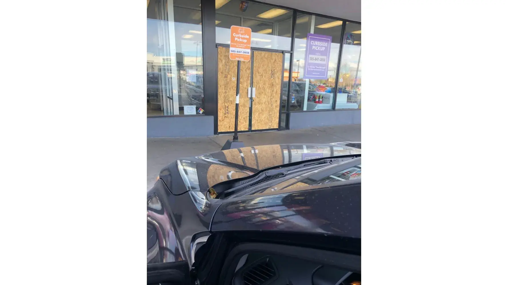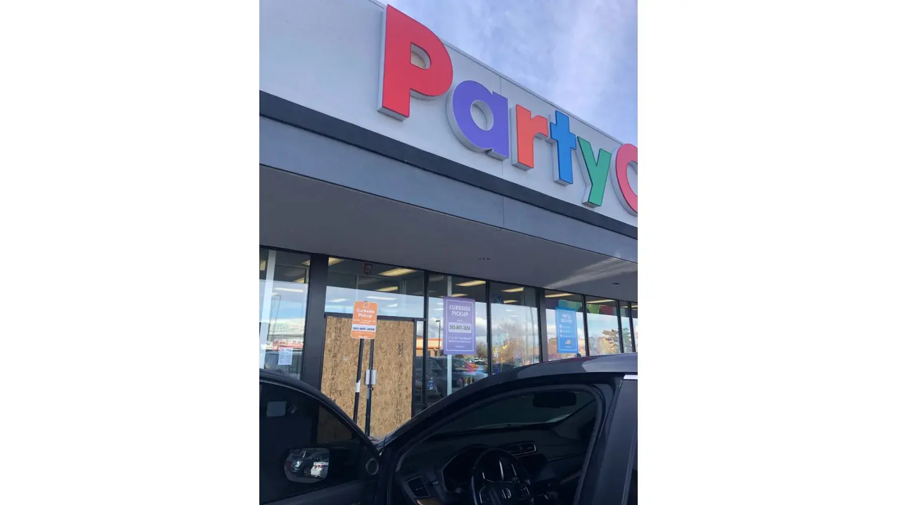 I am a frequent shopper at the Party City location, 4410 Wyoming Boulevard NE, Albuquerque, New Mexico 87111. I noticed in mid October that the storefront doors and some storefront windows were boarded up and was saddened that that type of vandalism had occurred.