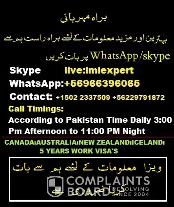 Sir i contact on Skype ID 'imiexpert' he told me about requirements i send my documents on Email Address [protected]@gmail.com then he show me Canada e-visa on Skype then he demand for 500$ visa charges advance under the name of Hina Hussain by western union then he don't give any type of visa for travelling and now he blocked me for asking about my money...