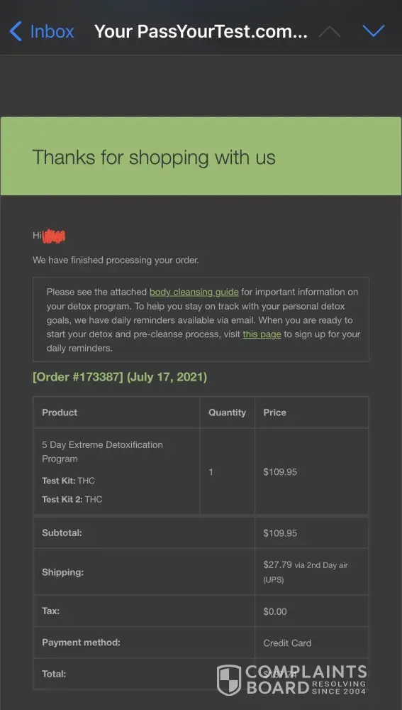 Disappointing Customer Service Experience with PassYourTest's Fall Safe Detox Kit