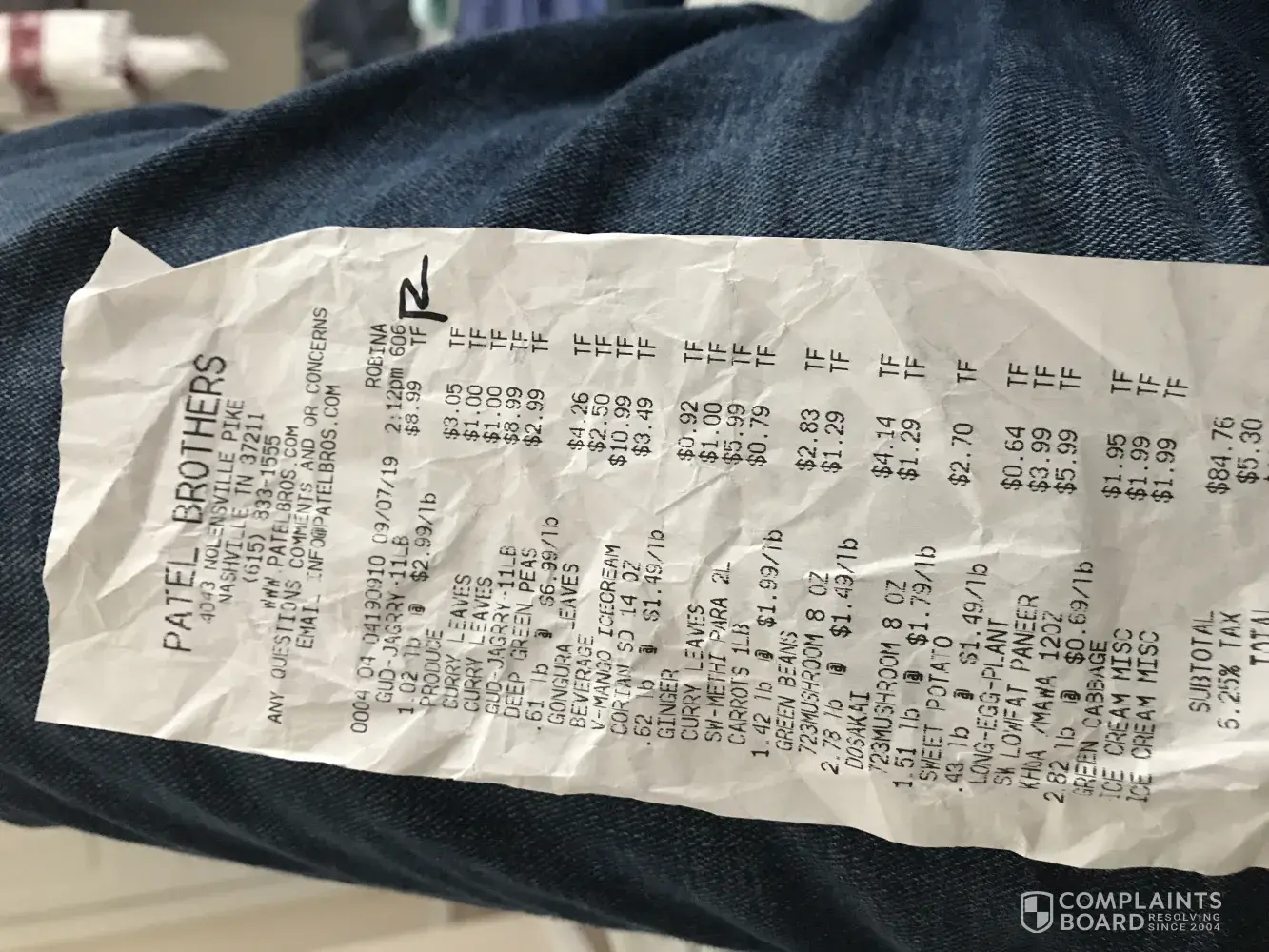 Read full complaintCashier Karishma Patel at Patel Brothers Niles.