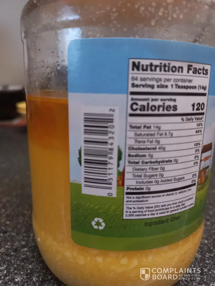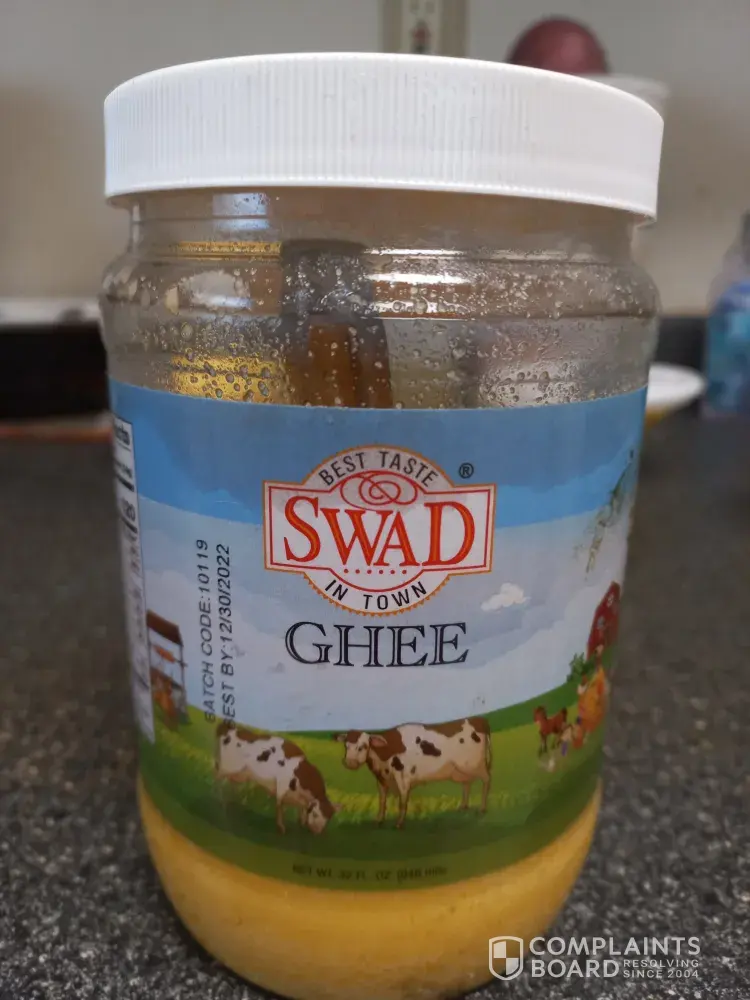 On 05/22/2021, I bought, a SWAD Ghee, 500 ml product, with serial:[protected]) at 330 Connecticut Ave, Norwalk, CT 06854. Unfortunately, your product I borough is not pure ghee, and in contain around 50-60 % of impure oil/external content (may contain unsaturated fat/wax/Animal fat/ other vegetable oil etc,). deally pure gee will melt at 30-32 degree...