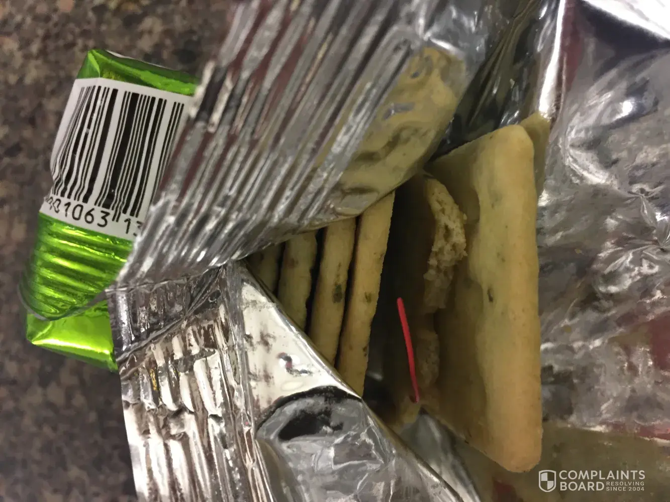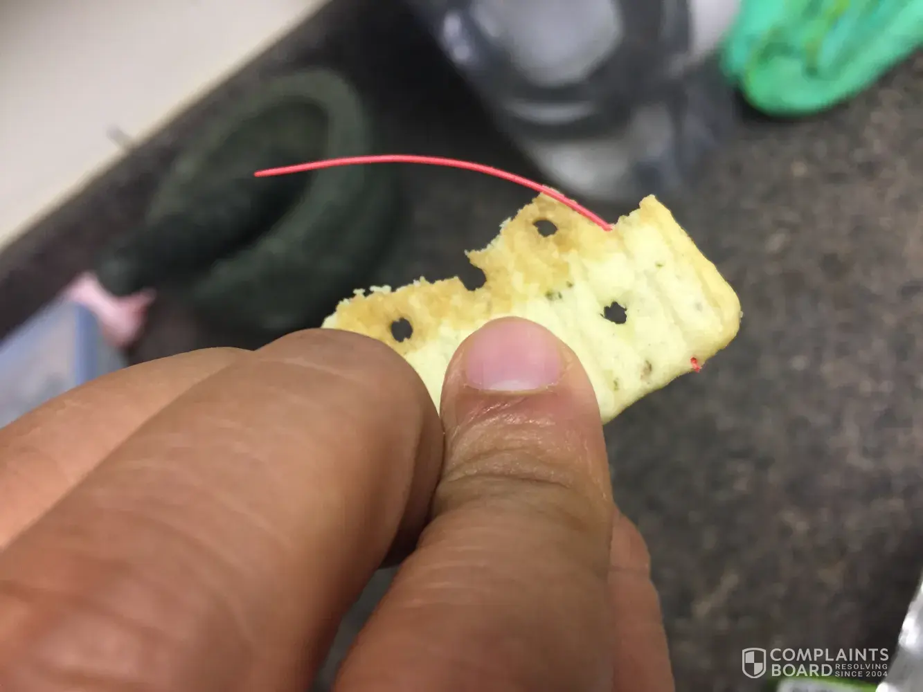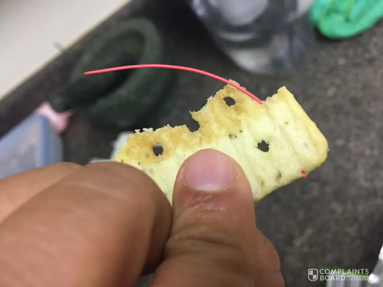 I bought this biscuit from Patel brothers N Attleboro and I found a wire inside it. This was a Brittania 50-50 biscuit that was on the shelf. My wife actually took a bite and then found out about it when she felt the wire on her teeth. Felt really disgusting afterwards. Not at all happy abot the whole experience.