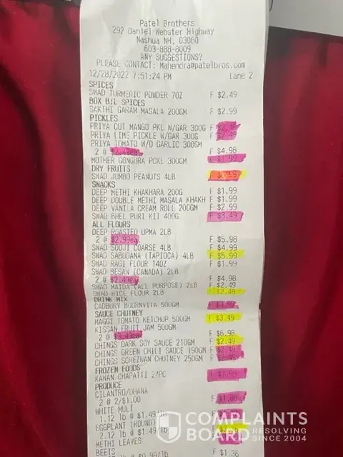 Patel Brother, s, always has pricing issues, what their product show price is not same what they charge at billing time, we go from millwaukee, but it really useless to tk grocery specially from patel brother, as their price r more than ur standard inian grocery shop in millwaukee, so plse check ur price on ur product and billing are same. Before leaving home.