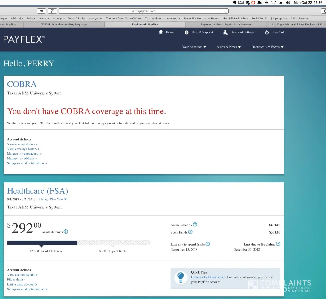 I paid into this account over several years while employed at Texas A&M University. I retired in June of 2018, with a $292.00 balance and was informed that I had a grace period to incur expenses and file claims. I received several emails, the last on 1 October 2018 saying: