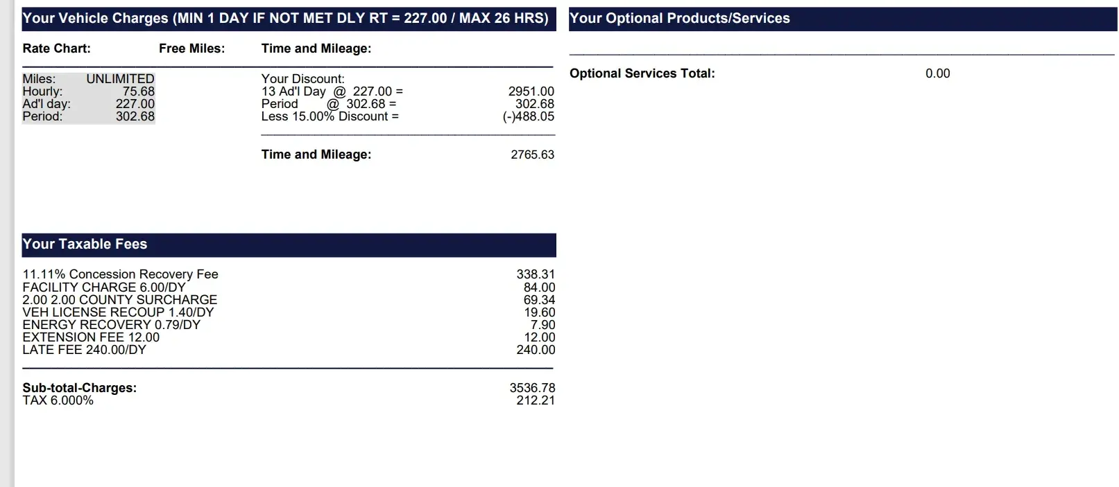Very shady car rental service 8 days for 4200, I already paid 600, bill $3700