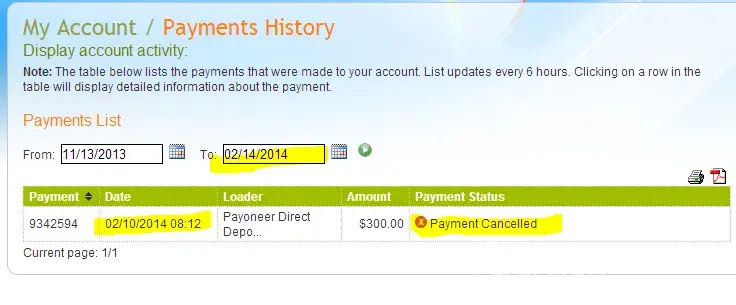 I wonder how many other payments are not being honored with them. I would not advise anyone to use them as they dont honor payments. Legal action has been taken against me for requesting chargebacks which I did not make! Dont use payoneer they will pull back the money you used to pay your accounts and leave you stranded. These "CHARGEBACKS WERE NOT CREDITED TO MY ACCOUNT" so was STOLEN. #[protected]