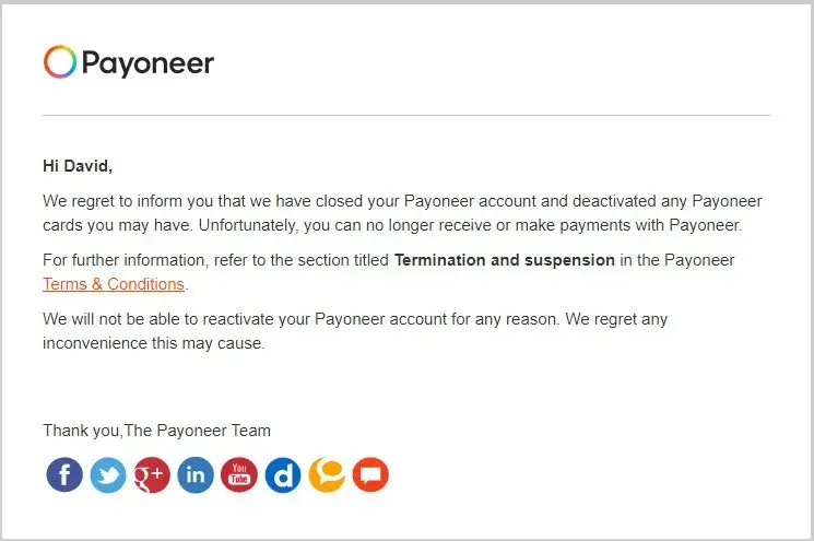 When I asked if any further actions would be taken by Payoneer on my situation, they said no further actions will be taken.