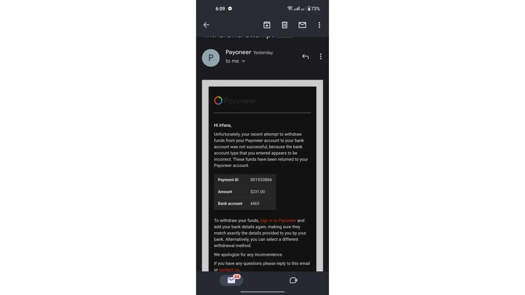 My Payoneer account locked and it has my 231$