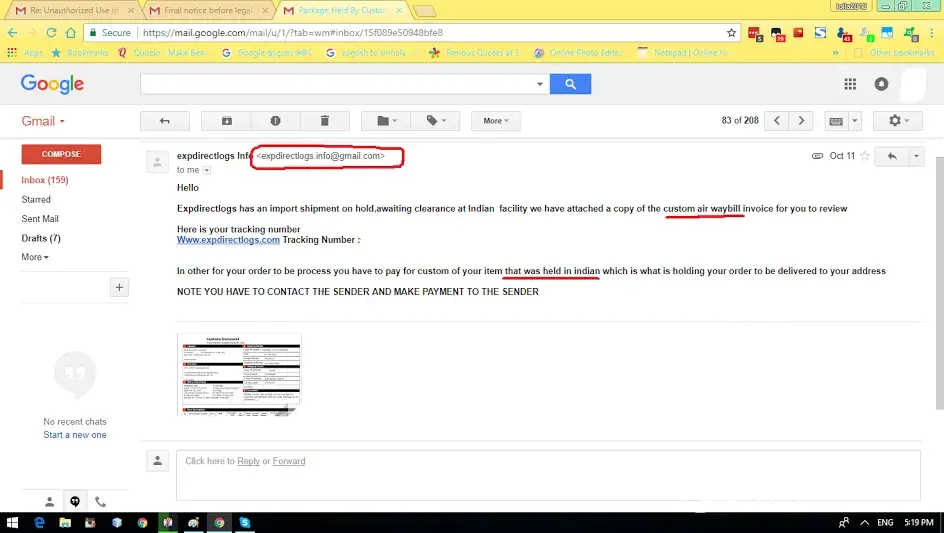Scammer created courier gmail:expdirectlogs.[protected]@gmail.com