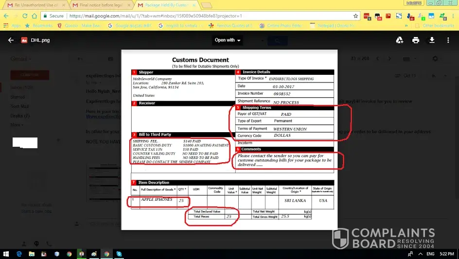 Screen captured of complaint of Code Name Prince Emmanuel Via DHL South Africa Branch by delaying and paying the Tax...