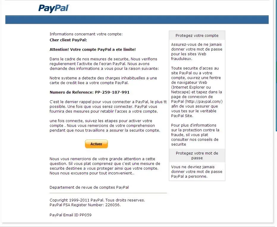 Hi, my name is Stephane and I received there are few days, an email (in French) with a button "Activer" to active my PayPal account by clicking on it, a thing that I do not made. Please check the proof join with this message.