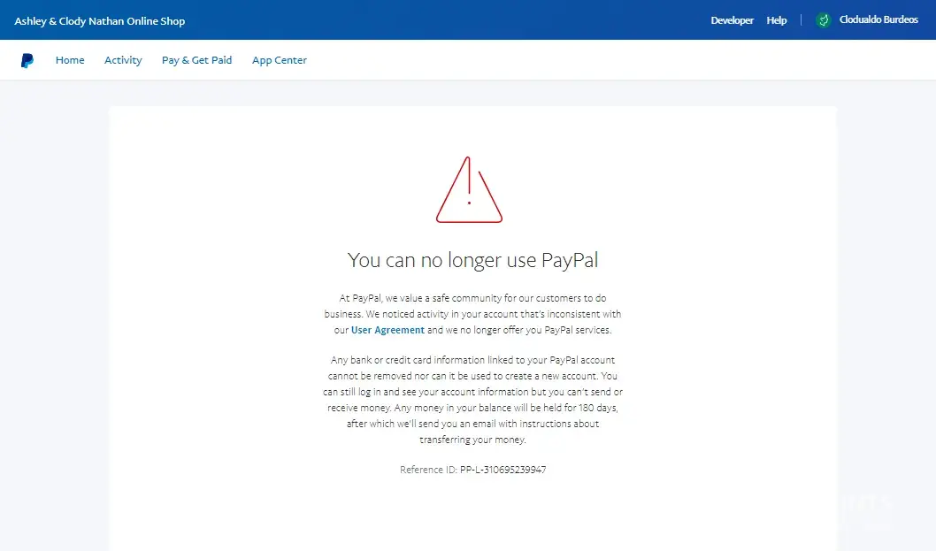 Holding my money for 180 days and permanently restricted my activities ref:id-pp-l-[protected]