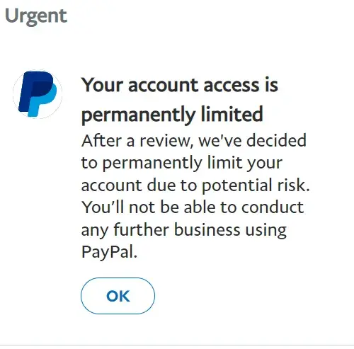 PayPal LIMIT my BUSINESS ACCOUNT On April 04, 2022..