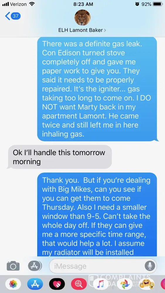 I reported these issues to my property manager via texts because that's our main source of communication.