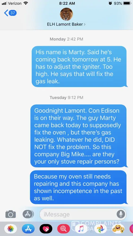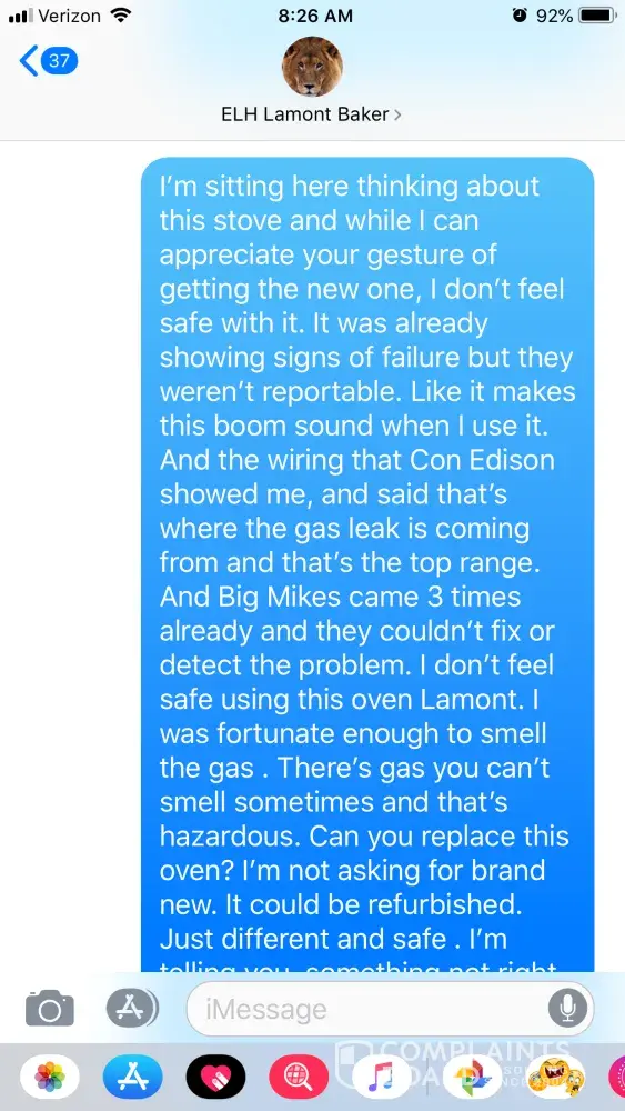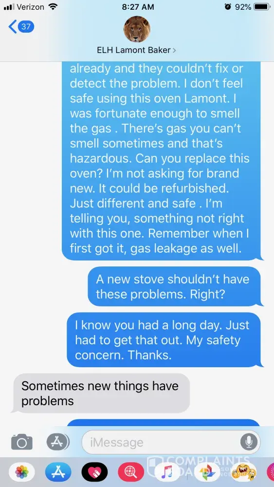 Fast forward, 1 year later, I go to turn my oven on and it won't ignite. I report it to the property manager. He sends a repair person out and they changed the ignitor and told me it burned out. When he left, I turned my oven on and after about 30 seconds, I smell overwhelming gas. I call the repair man who refuses to come back the same day, so I let property manager know this is serious and needed prompt attention, so the repair person came back the same day and took a second look and told me he would come back the next day to adjust the volume of ignitor which was the reason I was smelling gas. I took his word for it because he said he'd been doin his job for 40 years. He comes back the next day, adjusts the ignitor, but I still smelled gas when he left and moreso when I turned the oven on. Again, the property manager is made aware of this, and he schedules for the same repair persons to come back. I asked that they send someone different. They come again, and says they made the adjustment again with the ignitor and says that would fix the problem. It didn't.