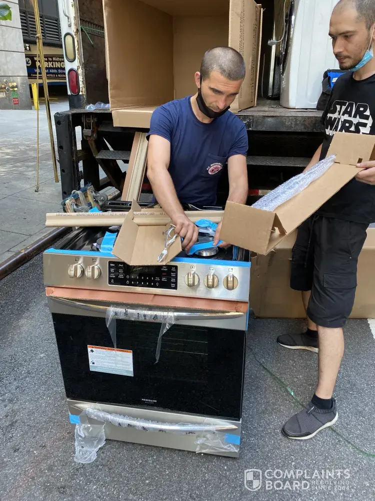 we had a scheduled delivery on July 1st, 2020 between 12:30 to 3:30 PM in Midtown Manhattan. We were told to be called half Hr. before the delivery so that the management can be informed and all protection is made for the delivery so Truckers do not waste their time. The management close at 4 PM and No workers allowed to work after 4 PM. All this was informed at the purchase. All were confirmed the day before the delivery. on July 1st, We have made numerous calls after 12:30 PM for the delivery to confirm the time. We also had parking blocked for the truckers since 12:30 PM because parking is difficult. Despite many calls to the store and corporate office, we were not able to locate the truckers. Finally, after lots of aggravation and frustration, the trucks showed up at around 4:15 PM when the management was closing. While unloading the Dishwasher and Microwave on top of the dishwasher it fell on the floor very hard. ( see photos)