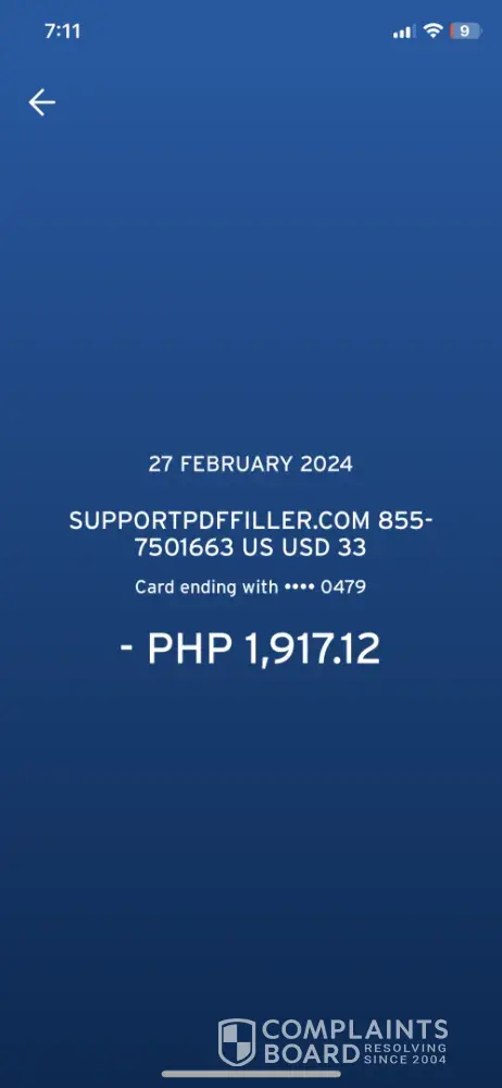 Read full complaint and 1 commentIs pdfFiller Legit?