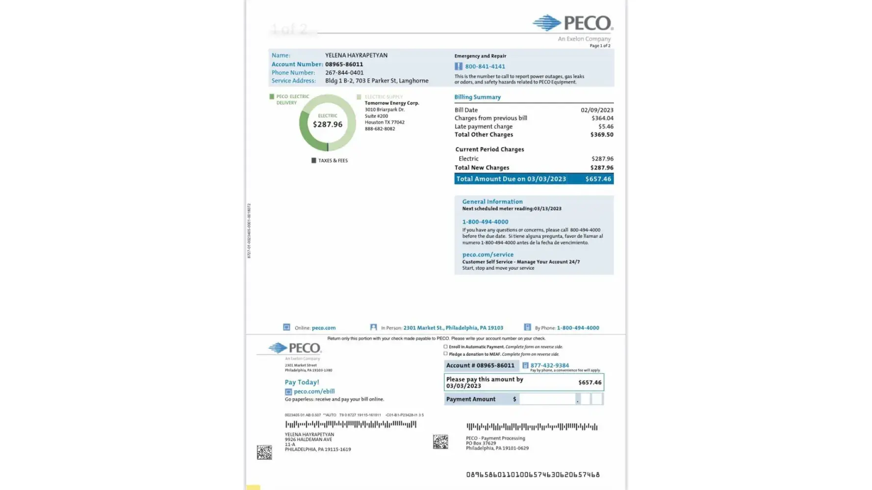 Been PECO customers for years. We almost always pay on time, and if we're late its only by a few days. Our bills are pretty low (rarely do they go above $100).