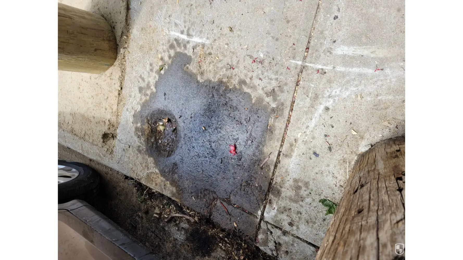 Desired outcome: Pick up the debris and stop the oily dripping immediately or move the pole elsewhere.