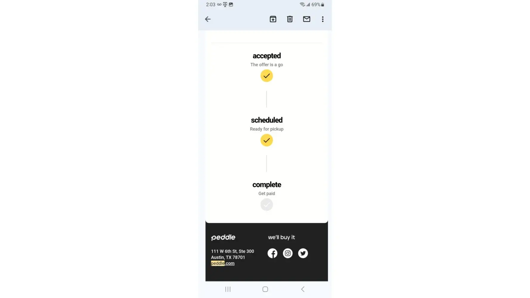 Peddle’s earns a 1.0-star rating from 0 reviews and 1 complaints, showing that the majority of car sellers are dissatisfied with selling experience.