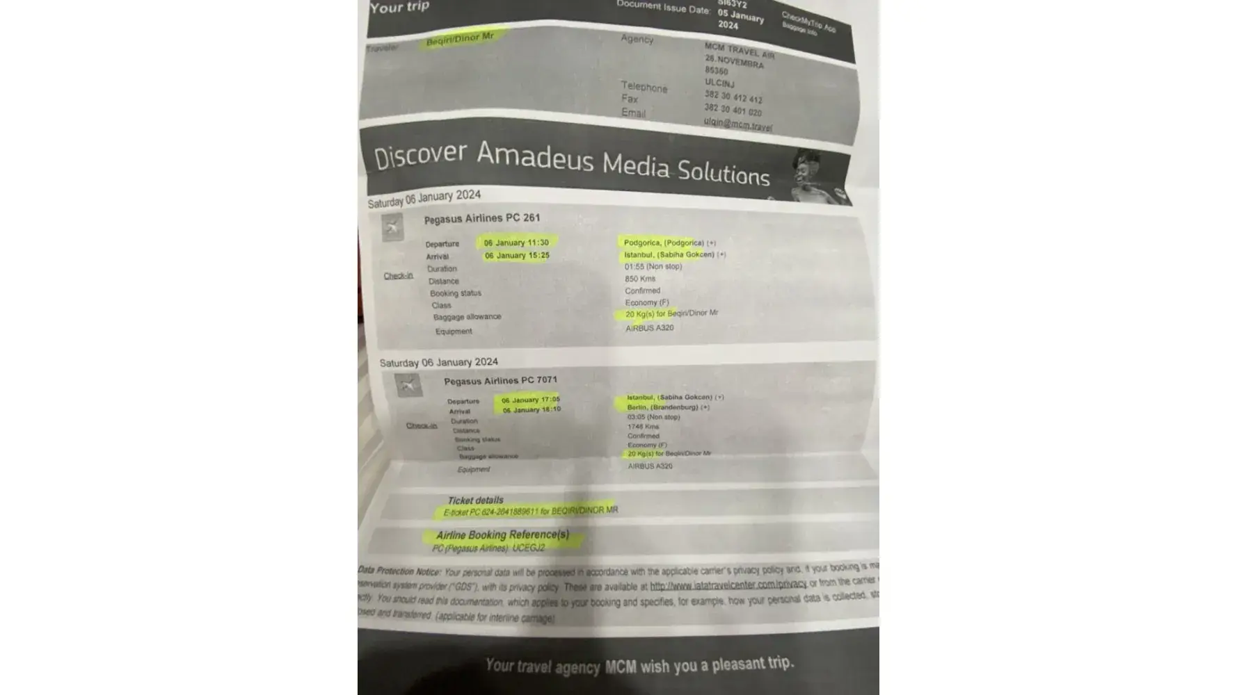 Dear Pegasus Company, I hope this message finds you well. I am writing to formally express my dissatisfaction and address several issues that have arisen during my brother Dinor Beqiri's recent flight with your airline. The culmination of these issues has reached a level that is unacceptable, prompting me to set aside my usual professional duties to bring...