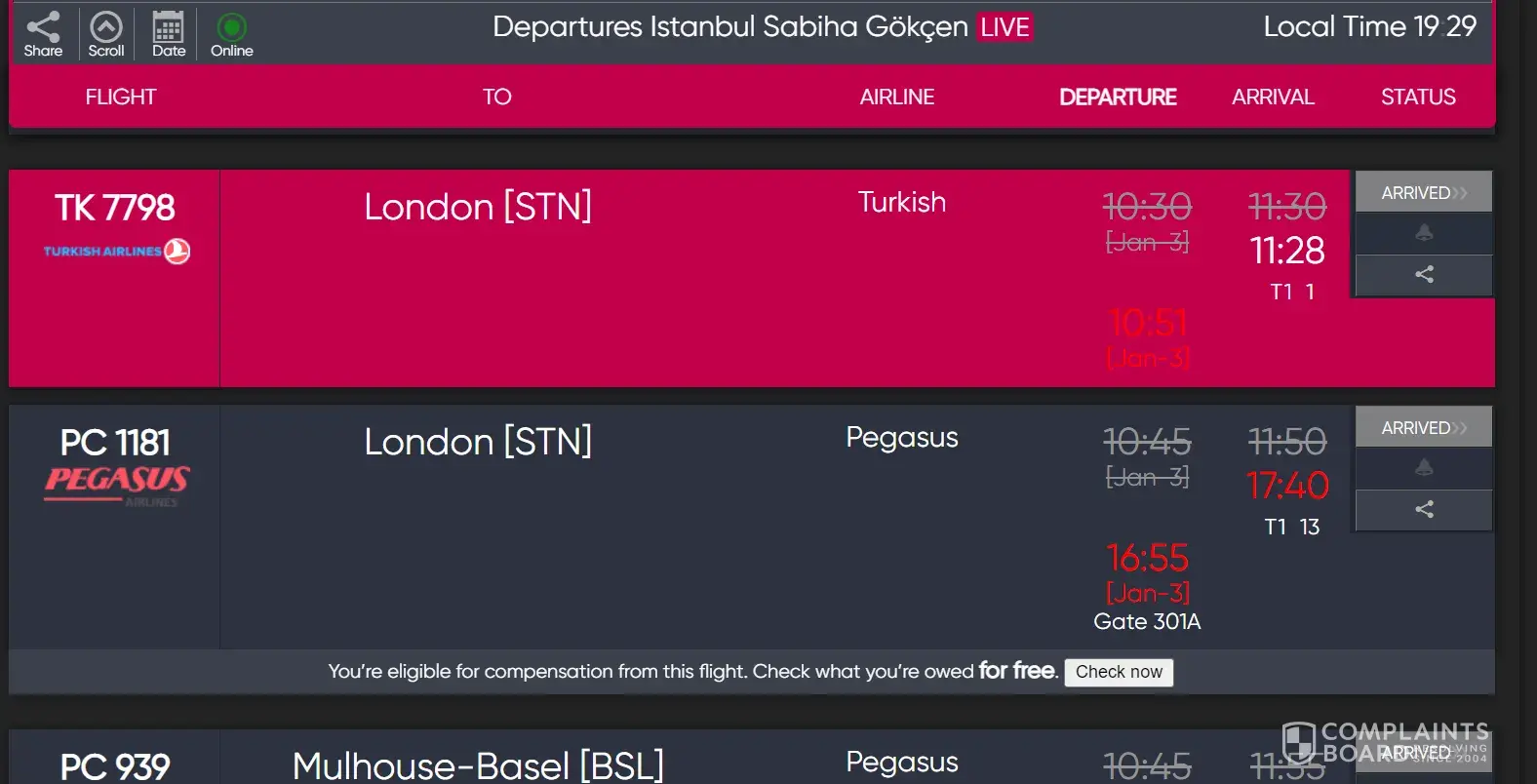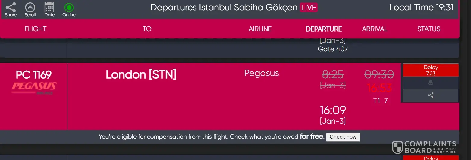 I took the flight no PC 1164 on Friday 23rd December at 23:40 from London Stansted to Istanbul Sabiha Gokcen.