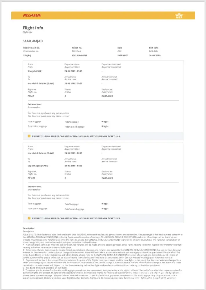 - My old pegasus air ticket