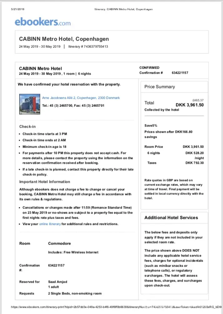 - My paid hotel booking (1night was missed)